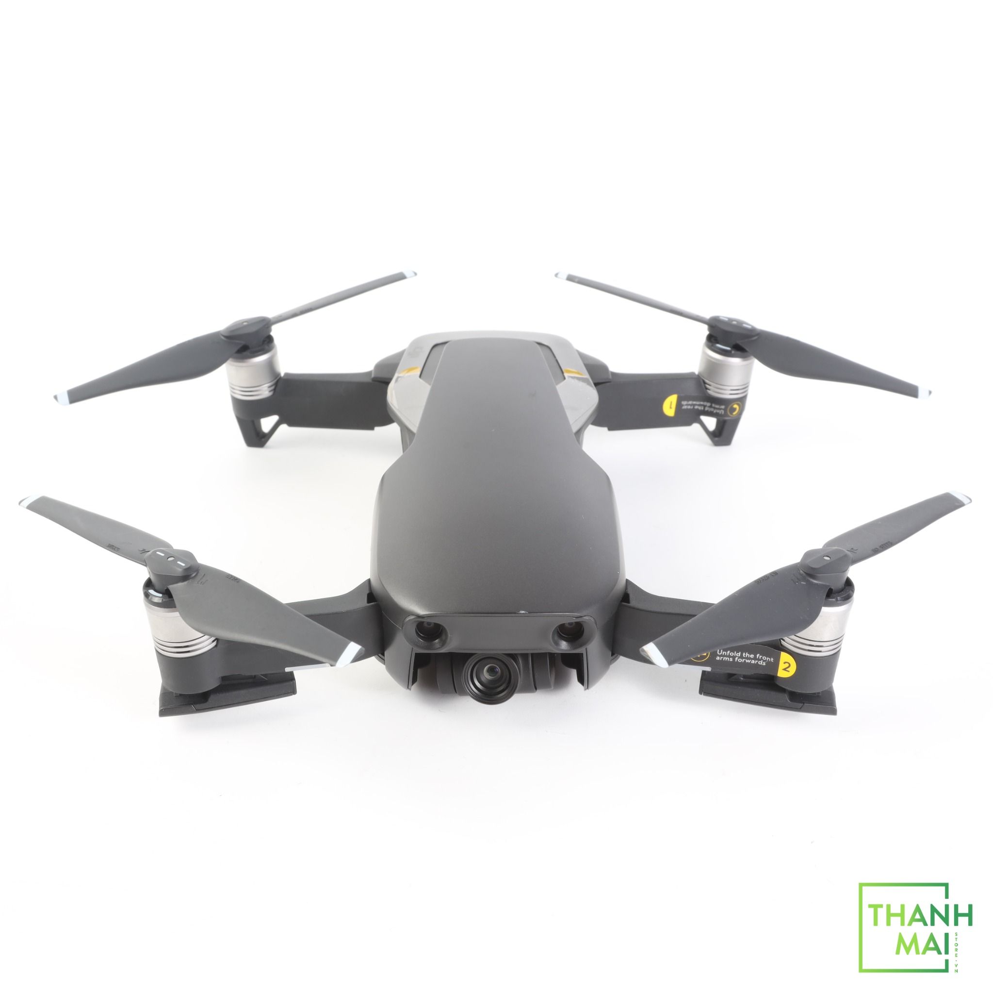 Phụ kiện đi kèm: 1 Mavic Air, 1 pin Số lần sạc 23, Remote controller, Sạc, 1 bộ cánh và 2 cánh dự Phòng, 1 Bộ Bảo Vệ Cánh, 3 cáp kết nối, 1 Hộp đựng Body, 1 Hộp Sách.