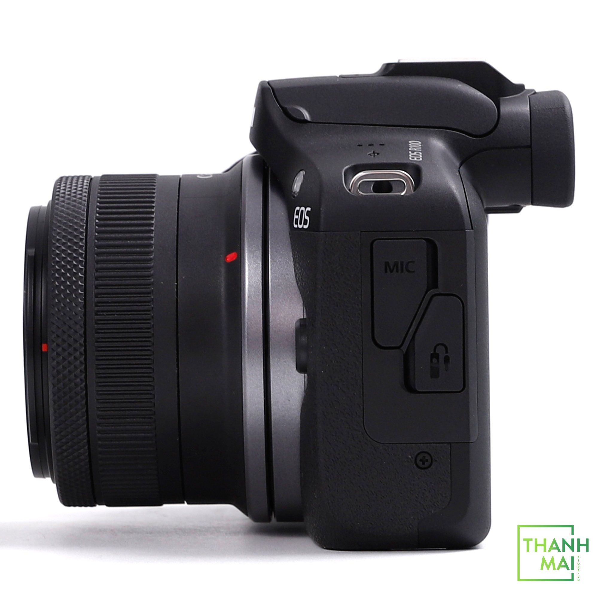 Về mặt ngoại hình, Canon R100 Kit RF-S 18-45mm F4.5-6.3 IS STM vẫn giữ các đường nét tổng thể của dòng R cao cấp ( như EOS R3 hay EOS R5).