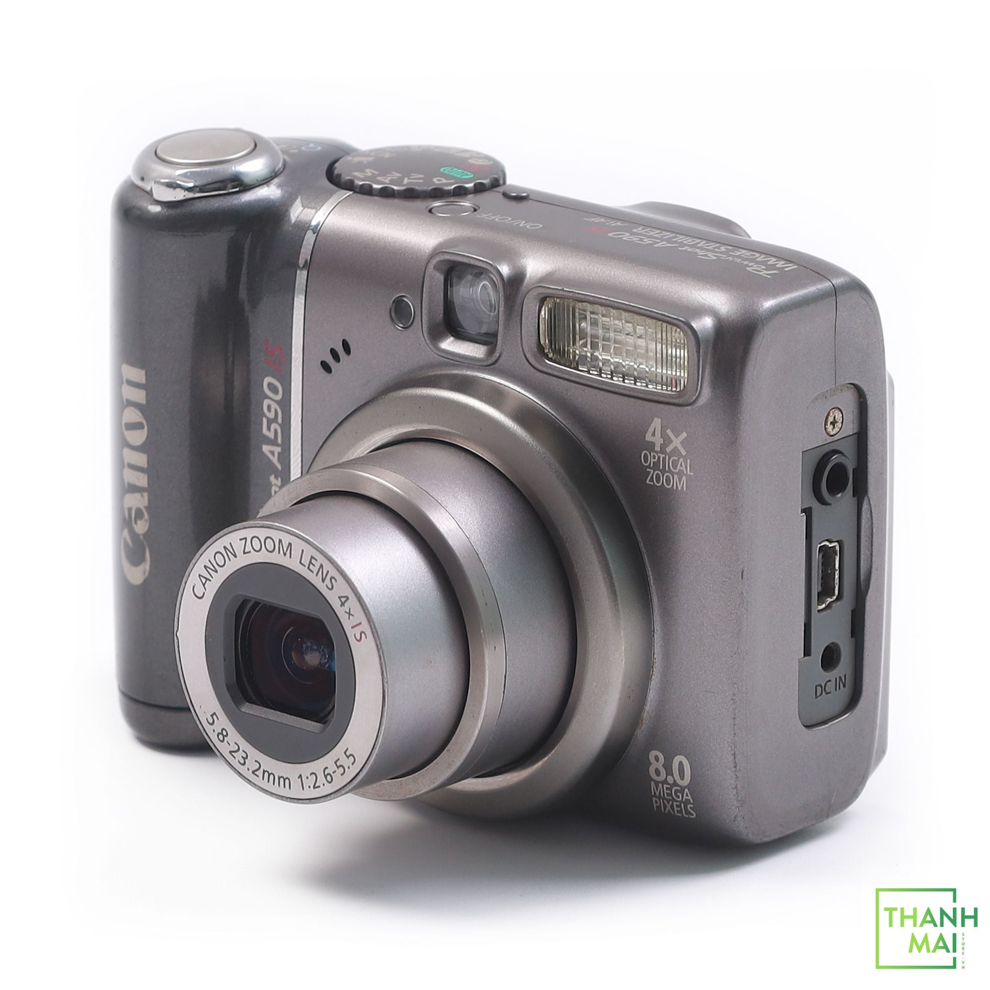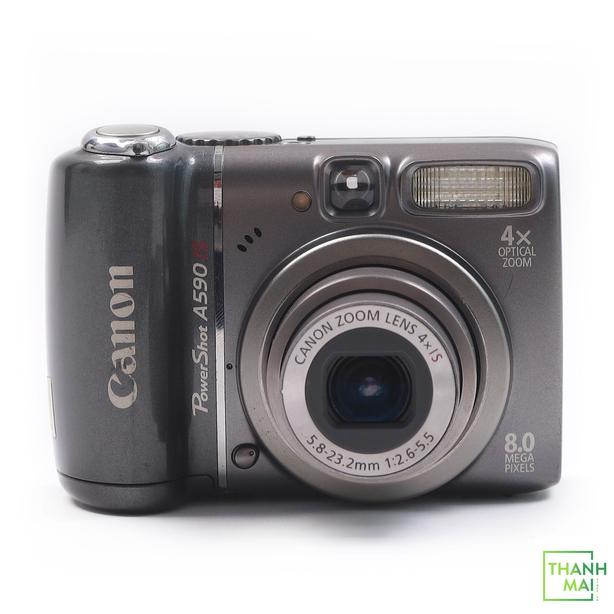 Máy ảnh Canon PowerShot A590 IS sở hữu ống kính zoom quang 4x, được chế tạo theo các thông số kỹ thuật khắt khe của Canon, cho khả năng chụp cận cảnh, chụp ảnh nhóm hoặc phong cảnh.