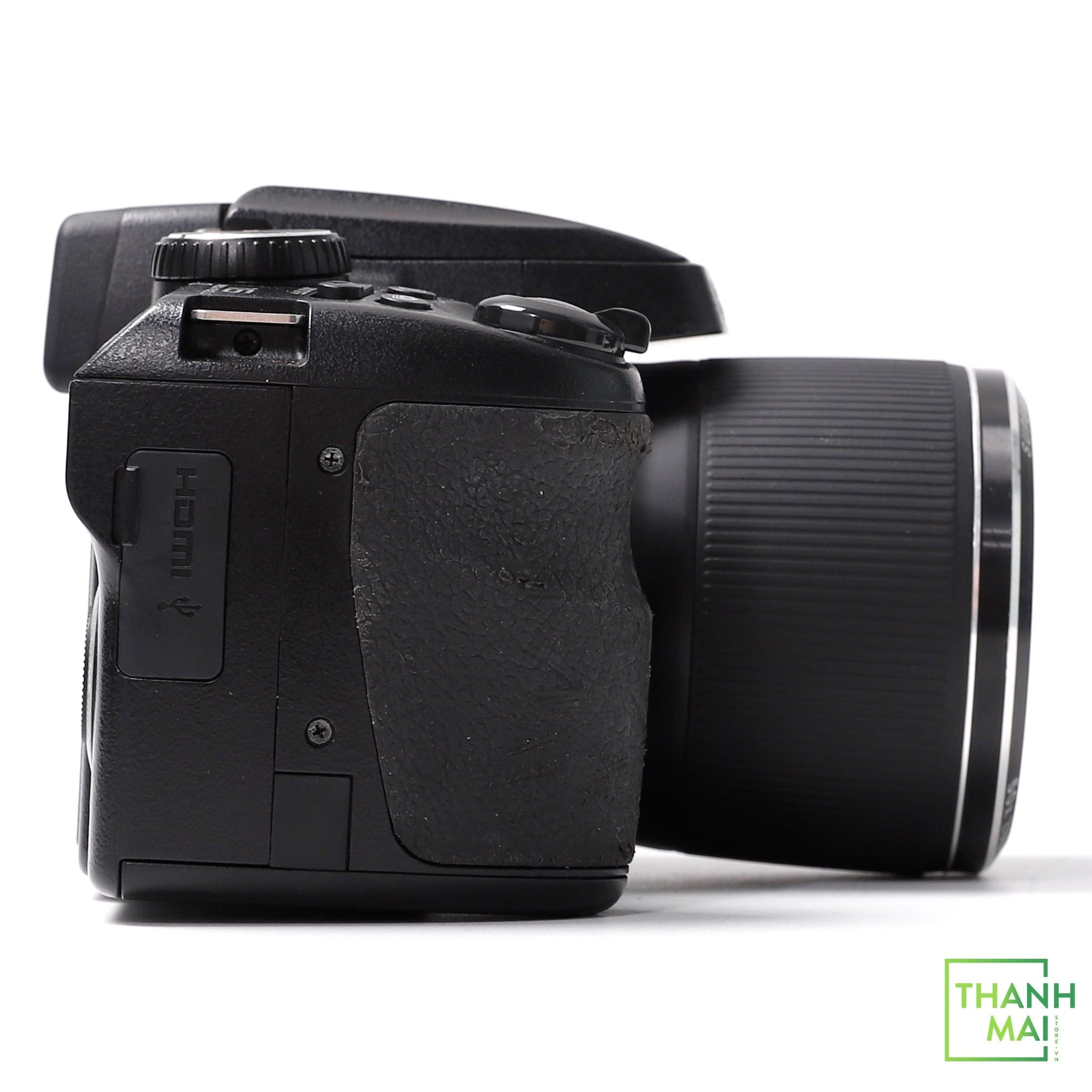 Tay cầm chắc chắn sử dụng bề mặt chống trượt giúp bạn thao tác nhanh chóng và thuận tiện. Ngoài ra, máy còn được trang bị thêm nút điều chỉnh zoom tiện dụng.