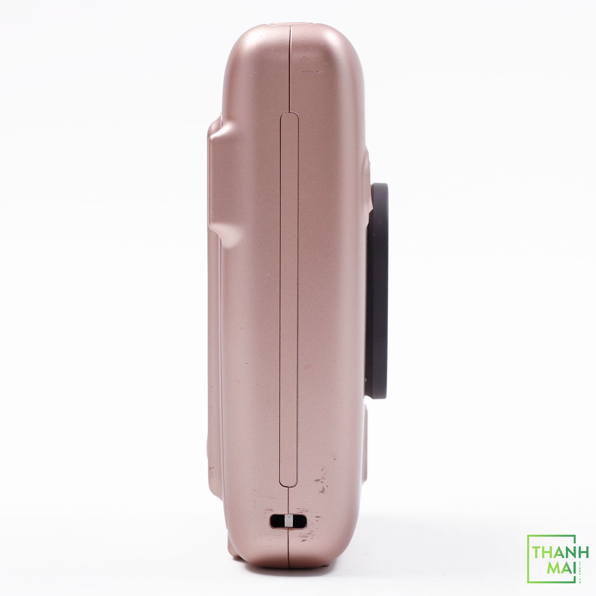 Ở mặt trước của Fujifilm Instax Mini LiPlay, bạn sẽ tìm thấy ống kính, được bao quanh bởi một khung kết cấu. Bên trong khung, bạn sẽ thấy đèn flash, có thể bật hoặc tắt từ menu.