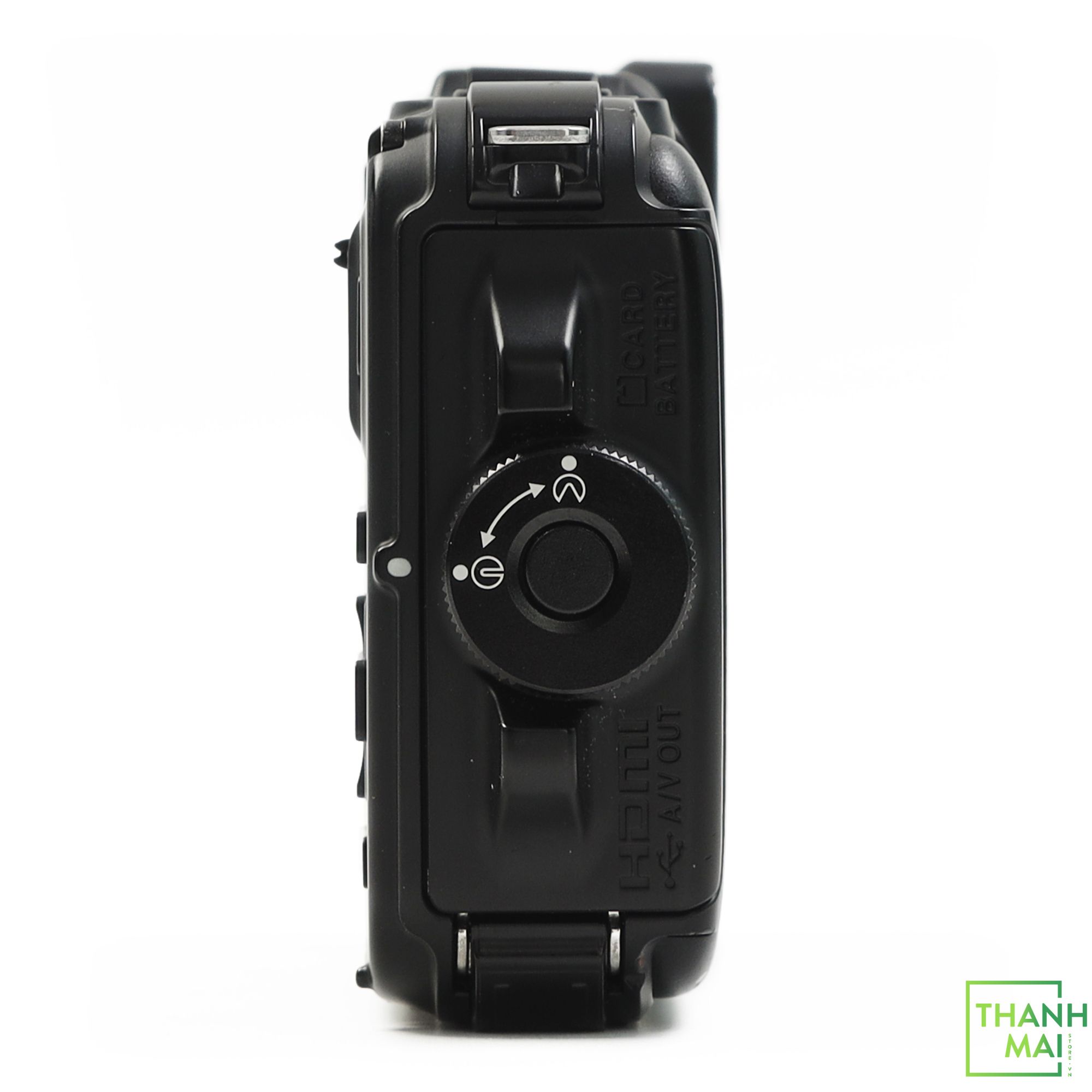 Ngoài ra, để phù hợp với tính năng của một chiếc máy ảnh có khả năng thách thức mọi điều kiện thời tiết, Nikon đã rất tinh tế khi thiết kế vị trí để pin và thẻ nhớ. Theo đó, pin và thẻ nhớ được bảo vệ bởi một nắp khóa cao su ở cạnh bên của sản phẩm. Để mở được nắp pin, bạn phải nhấn giữ vào nút tròn ở giữa và xoay chốt vặn.