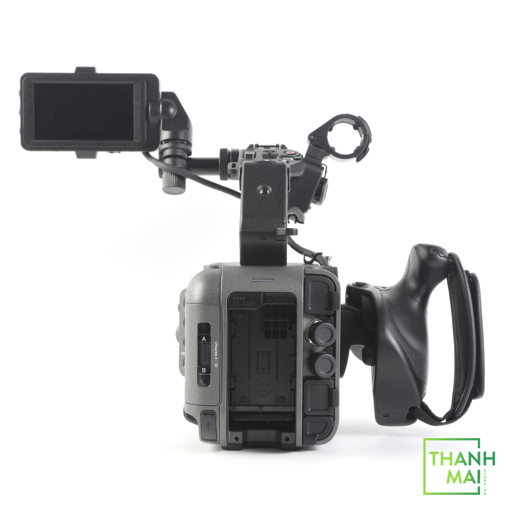 Lý tưởng khi quay chụp ở góc thấp, tay cầm thông minh là một phần trong thiết kế mô-đun của Máy quay phim Sony FX6. Việc cấu hình lại cho mọi ứng dụng rất dễ dàng, bao gồm cả gắn lên gimbal, máy bay điều khiển từ xa hoặc vỏ bảo vệ dưới nước.
